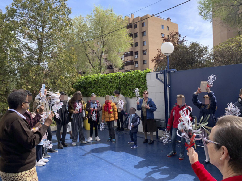 En este tiempo también hemos celebrado el final de la Cuaresma, el domingo de Ramos y la Semana Santa. Unos días antes de la celebración del domingo de Ramos hicimos unas palmas caseras para sacarlas en procesión por el jardín ese día tan señalado. Durante toda la semana estuvimos haciendo talleres y reflexionando acerca de lo que es la Semana Santa y su significado y el domingo de resurrección hicimos una celebración en el jardín que compartimos con todos los vecinos y vecinas, dándoles las gracias.